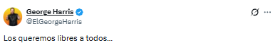 A través de su cuenta en X, Harris compartió un mensaje: «Los queremos libres a todos…».