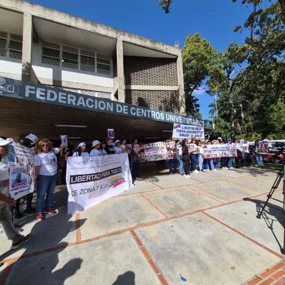 Estudiantes, trabajadores y familiares de detenidos se concentraron este martes 3 de febrero en la Universidad Central de Venezuela (UCV) para exigir la libertad plena de todos los presos políticos en el país.