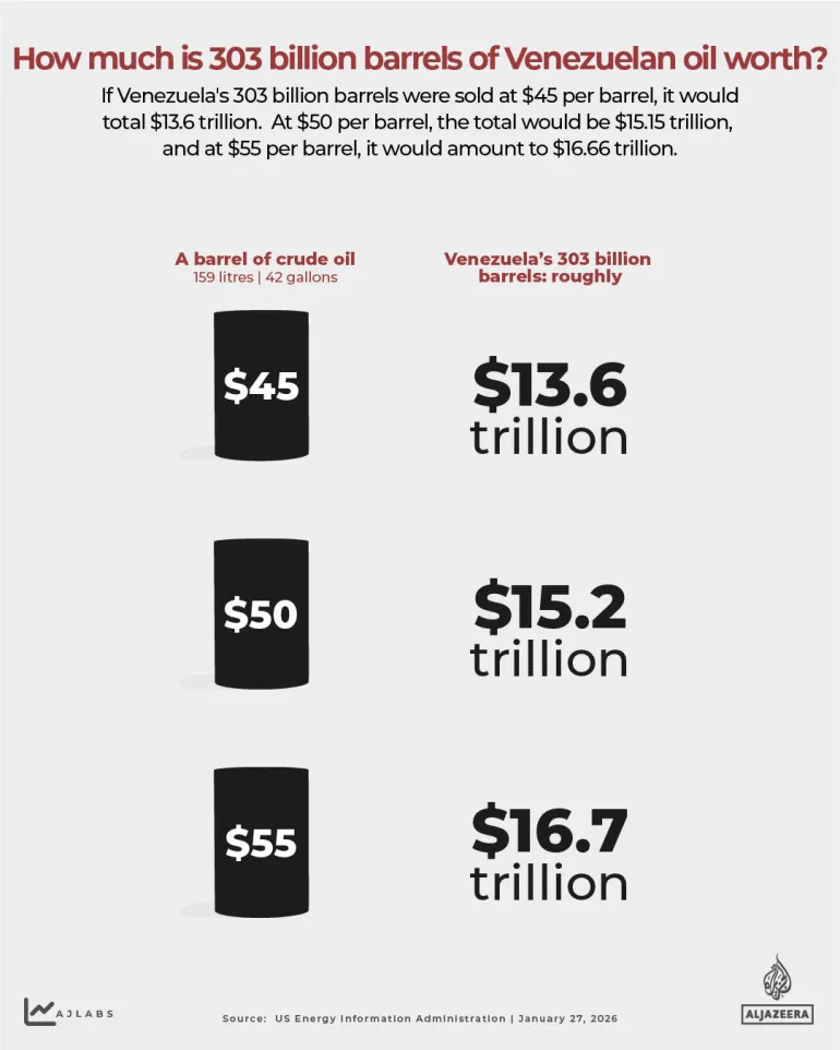 Pero, ¿qué representa esa cantidad de petróleo en términos físicos? Para darle sentido, Al Jazeera utiliza la escala, el volumen y el consumo para traducir las vastas reservas de Venezuela a términos más comprensibles.