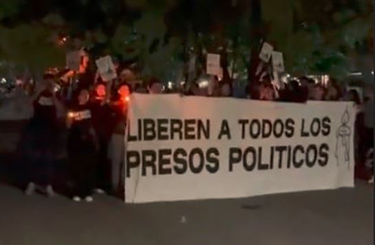 El mensaje central, visible en una gran pancarta blanca, rezaba: «Liberen a todos los presos políticos».