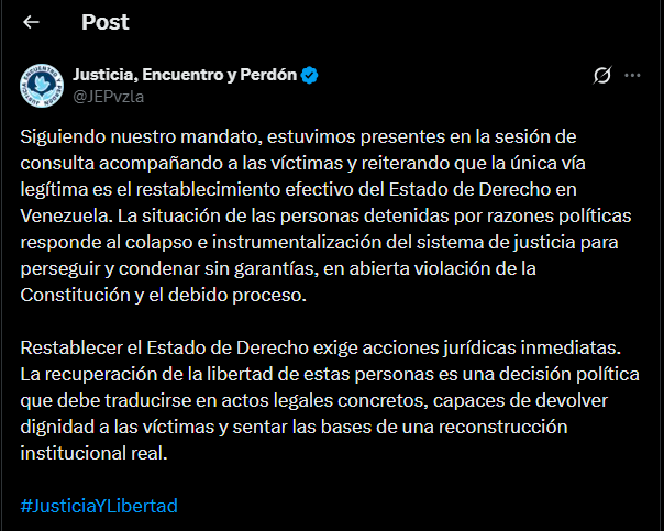 La organización ha sido parte de las voces que exigen justicia para presos políticos y un cambio real en las políticas de detención por motivos políticos en el país.