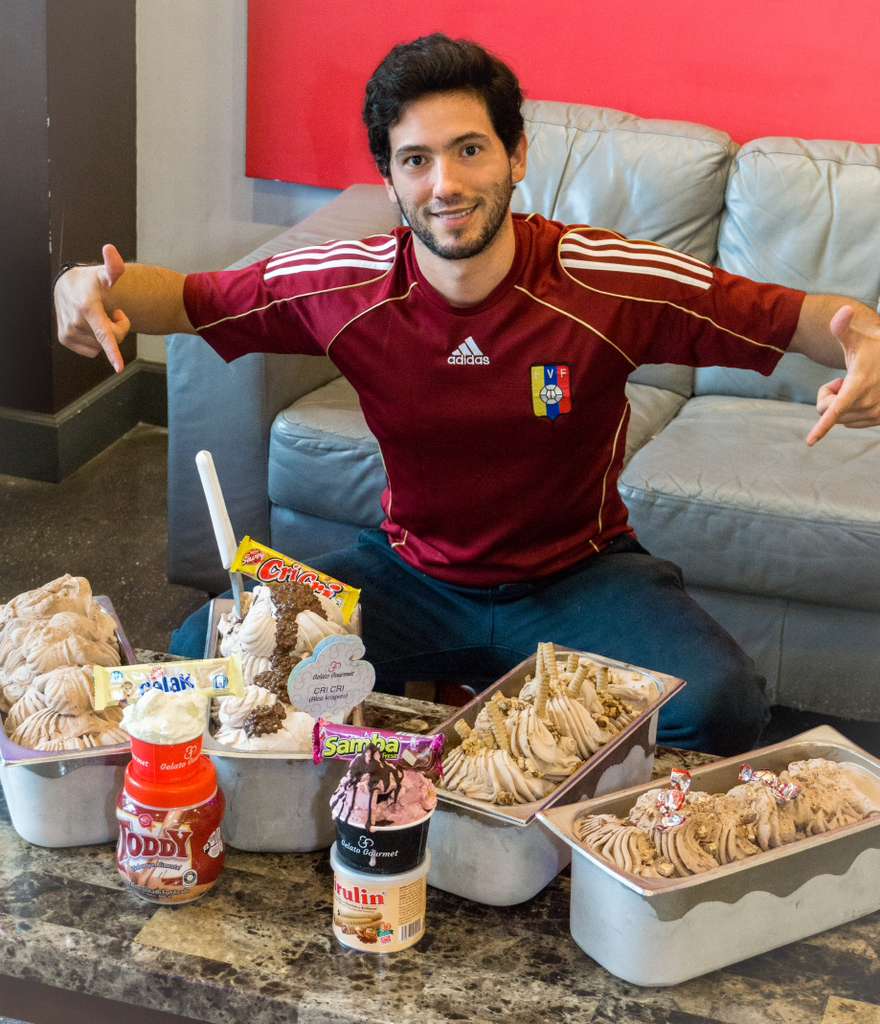 Ezequiel Gómez es de San Juan de los Morros, un lugar donde su vida laboral comenzó lejos de las cocinas. Antes de emigrar, formaba parte del negocio familiar: una ferretería dedicada a la venta de materiales de construcción, un oficio estable que nada hacía presagiar que su futuro estaría ligado a la creación de gelatos muy particulares.