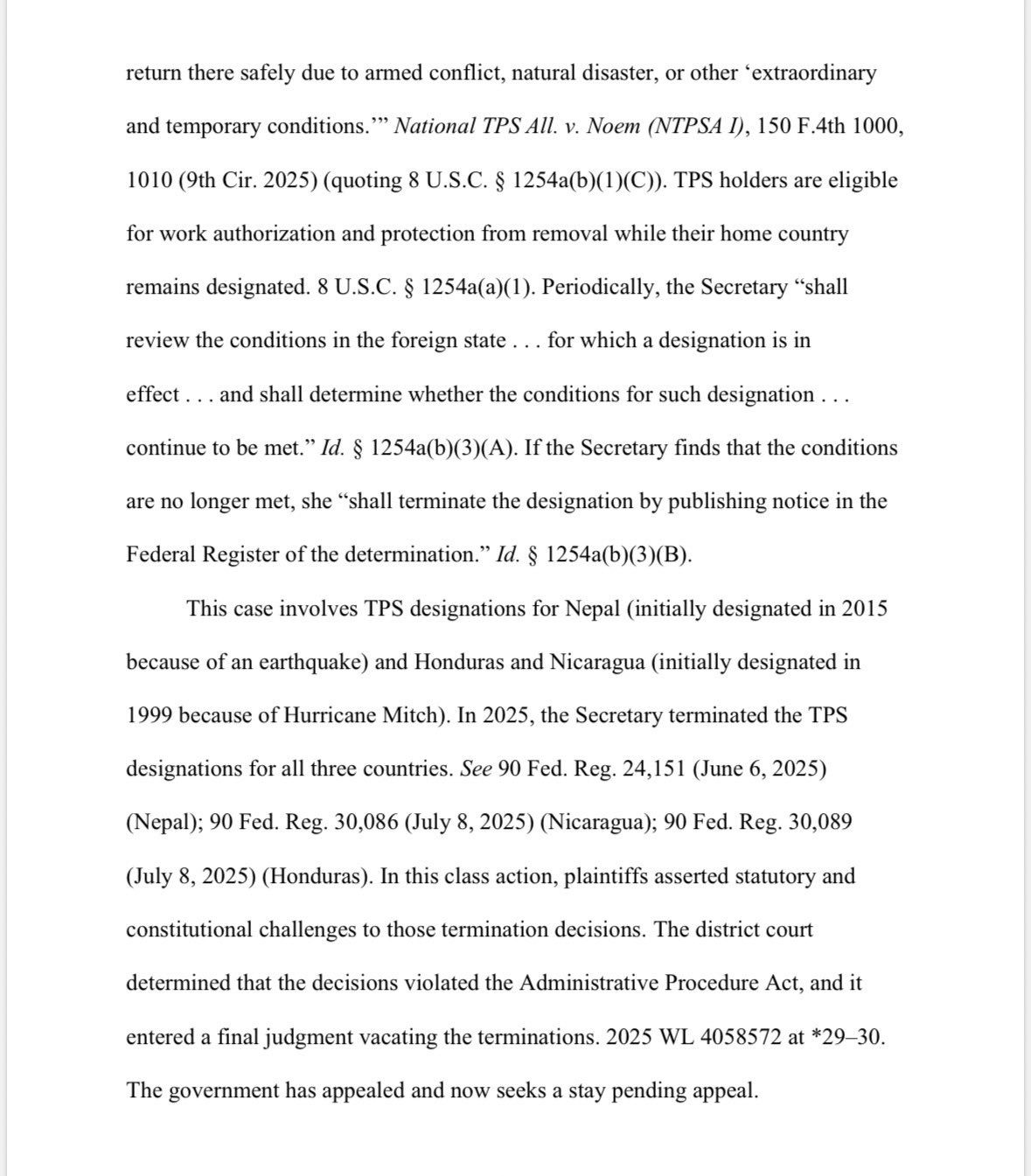 Afirmó además que el TPS “nunca fue diseñado para ser permanente” y acusó a administraciones anteriores de convertirlo en “un programa de amnistía de facto durante décadas”.