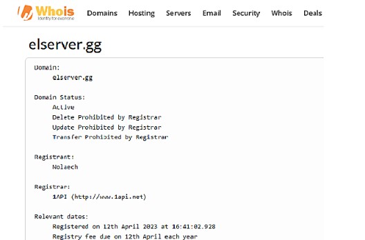 Este último hecho guarda relación con otra de las informaciones que se muestran en esta base de datos. En concreto, el día en el que vence la propiedad del nombre ‘elserver.gg’ en internet. Tal fecha, coincide con la información publicada por el medio digital The Objective en 2025 en la que aseguraban que ‘El Server’ apareció por primera vez en internet el 12 de abril de 2023. Ese dato desvelado por el medio ya citado, coincide con los detalles de la fuente documental consultada por este periódico, en la que se señala que, el día 12 de abril de cada año, la tasa de registro del dominio ‘elserver.gg’ vence.