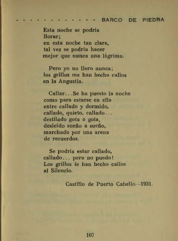 A continuación, algunos de los más emblemáticos poemas incluidos por Andrés Eloy Blanco en «Barco de Piedra»: