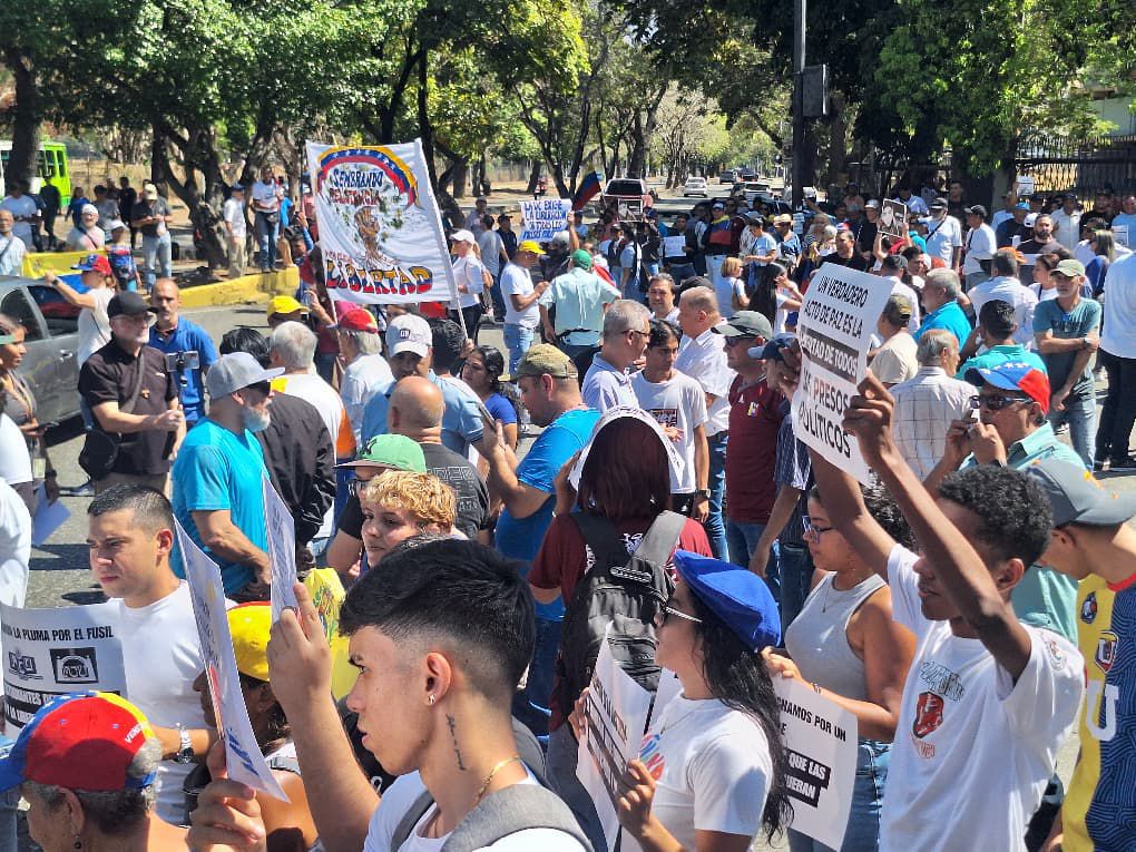 A la protesta se le unieron los voceros y representantes de los partidos políticos, gremios defensores de derechos humanos y familiares de los presos políticos para exigir la aprobación de la Ley de Amnistía, que se discutirá hoy en la Asamblea Nacional.