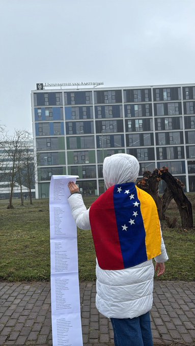 En imágenes difundidas a través de la redes sociales, se ve a la diáspora venezolana en diferentes universidades en el extranjero, con una lista que muestra a las víctimas del chavismo.