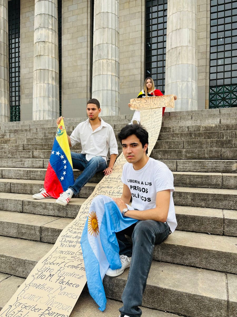 Estudiantes venezolanos de la Universidad de Buenos Aires, Argentina, mostraron la lista de las personas afectadas por la represión en Venezuela | Foto Cortesía