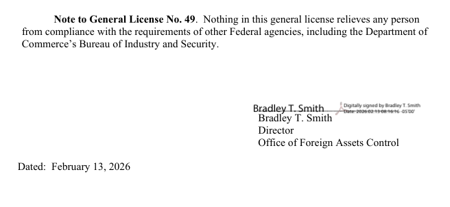 La autorización no permite transacciones con empresas en Rusia, Irán o China ni con entidades propiedad o controladas por empresas conjuntas con personas de esos países.