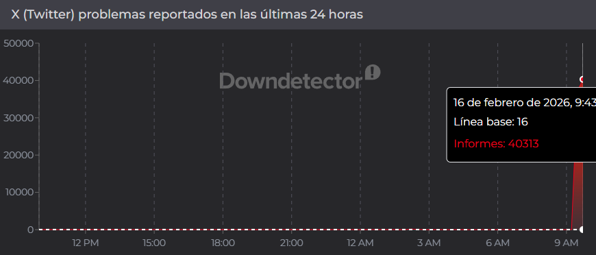 De acuerdo con el monitor digital Downdetector, al menos 40.313 reportes indicaron severos problemas para utilizar el servicio y realizar publicaciones en X.