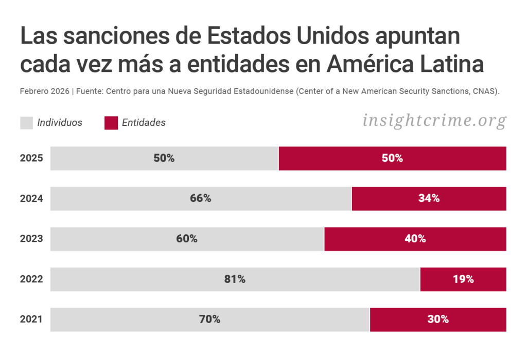 La creciente lista de sanciones viene con un nuevo enfoque: entidades por encima de individuos. En lugar de sancionar principalmente a personas, el Departamento del Tesoro apunta cada vez más contra redes criminales más amplias.