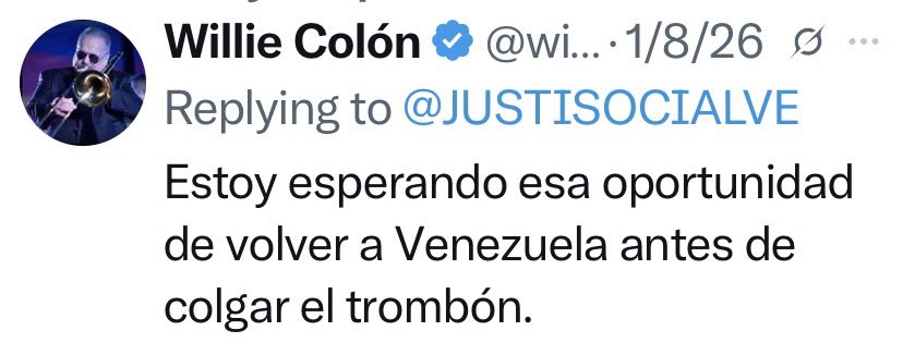 En una de sus últimas publicaciones, el artista expresó un deseo profundamente sentido: regresar a Venezuela antes de “colgar el trombón”, con la esperanza de presentarse en una Venezuela libre del régimen chavista y ofrecer un concierto que simbolizara unión y libertad para sus fanáticos y la diáspora venezolana.