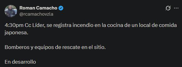 Un fuerte incendio se registró este lunes en la cocina de un restaurante japonés dentro del centro comercial Líder en Caracas, lo que generó alarma entre clientes y visitantes.