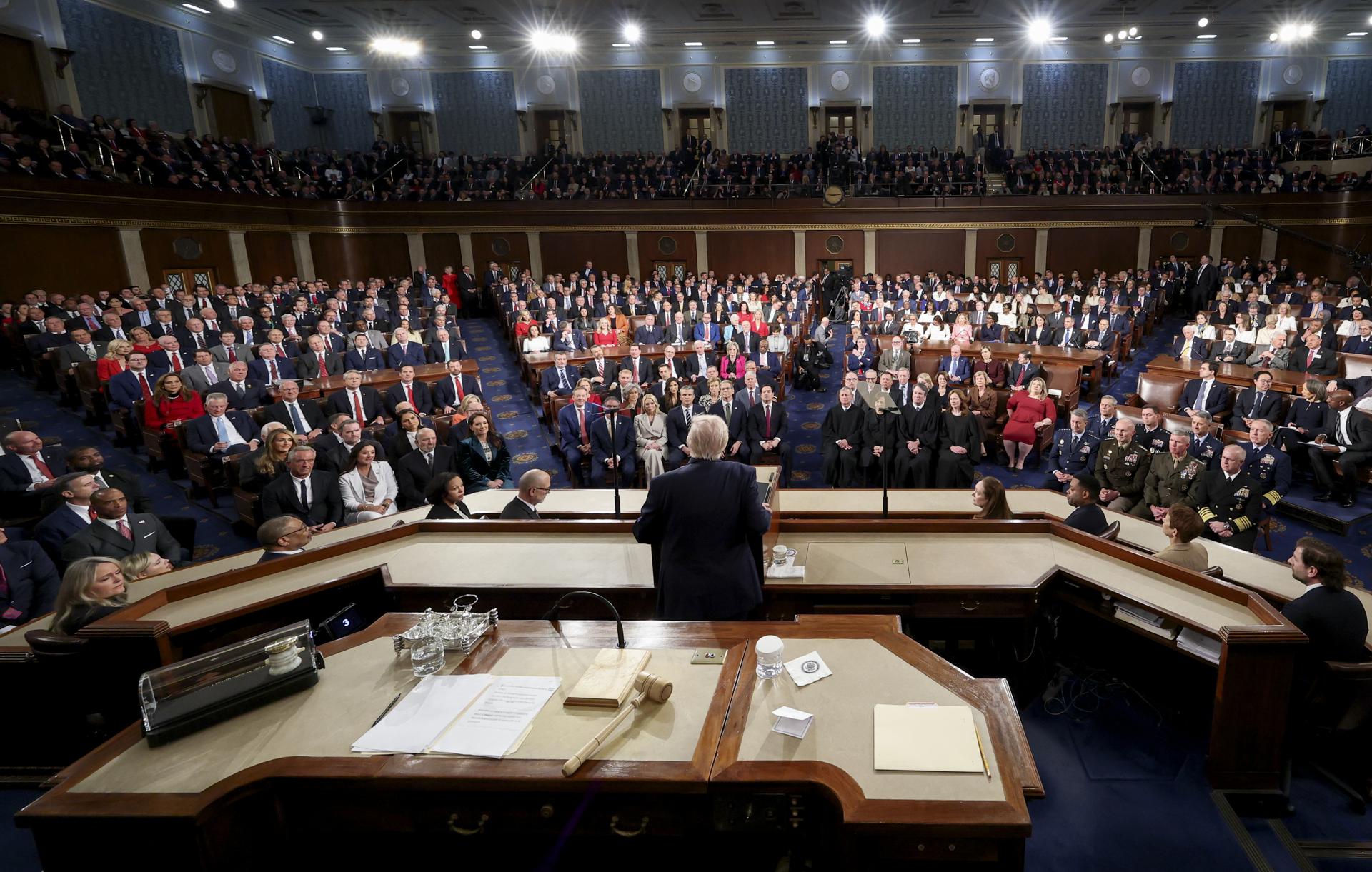 El presidente de EE.UU., Donald Trump, realizó este martes un discurso sobre el Estado de la Unión de 107 minutos, el de más duración ante una sesión conjunta del Congreso en la historia del país.