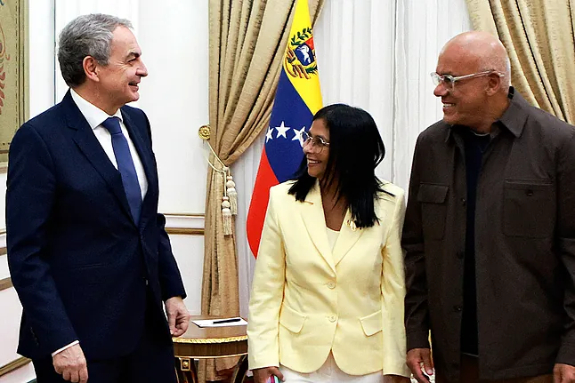 José Luis Rodríguez Zapatero, durante su reunión con la presidenta encargada de Venezuela, Delcy Rodríguez, el pasado 6 de febrero. / EFE
