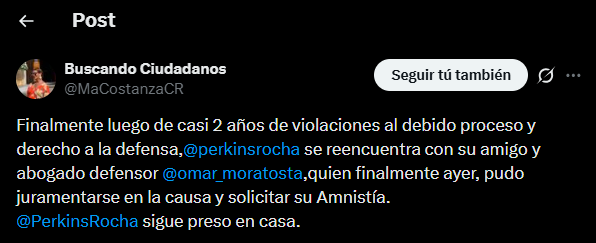 Esta situación fue confirmada por Cipriani, quien enfatizó que aunque Rocha no esté en una cárcel, su condición legal aún exige una resolución definitiva sobre su situación judicial y la posible concesión de la amnistía solicitada por Mora Tosta.