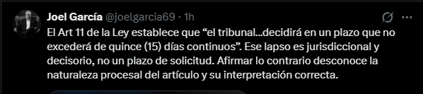 El abogado penalista explicó que este lapso de 15 días se refiere estrictamente a una facultad jurisdiccional y decisoria del tribunal, no a un plazo para presentar solicitudes de amnistía.