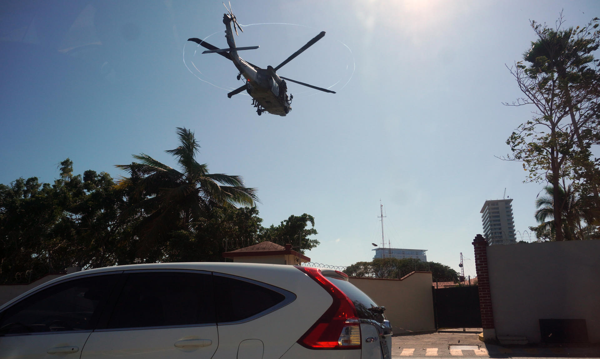 Un helicóptero de la Marina realiza un vuelo de vigilancia este miércoles, en Puerto Vallarta (México). EFE/ Arturo Montero