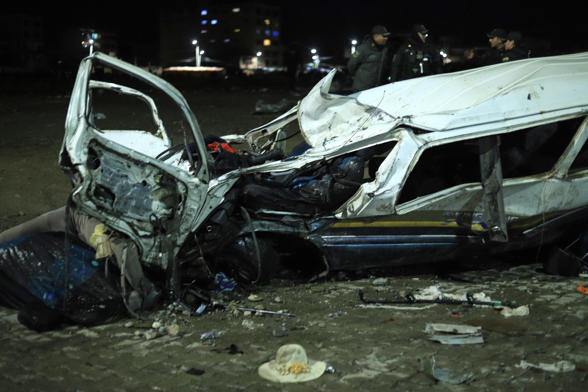Miembros de la Policía y las Fuerzas Armadas resguardan todo el perímetro del lugar del hecho, dentro del cual aún hay restos de cuerpos que deben ser levantados por las autoridades pertinentes, revelaron autoridades policiales.