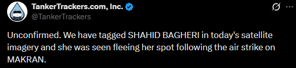 Asimismo, TankersTrackers negó tener información sobre el presunto ataque, difundido por fuentes extraoficiales, contra el portadrones iraní IRIS Shahid Bagheri, que se encontraba próximo al IRIS Makran.
