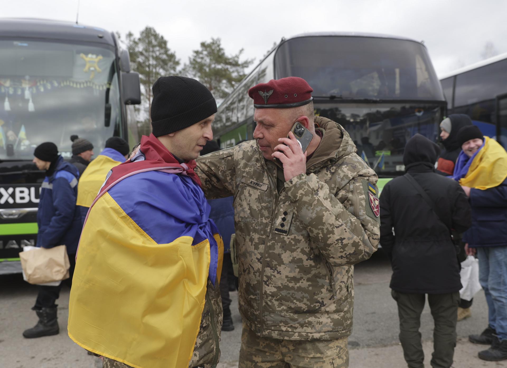 «Muchos de ellos se encuentran en un estado psicológico complicado. Algunos tienen un peso muy por debajo del normal», declaró el defensor del pueblo de Ucrania, Dmytro Lubinets entre emotivas escenas en las que los liberados llamaban a sus familias por primera vez en años.