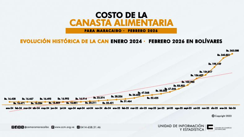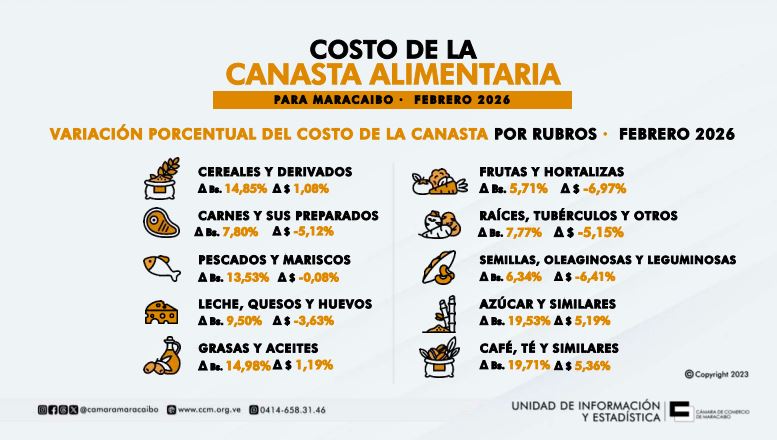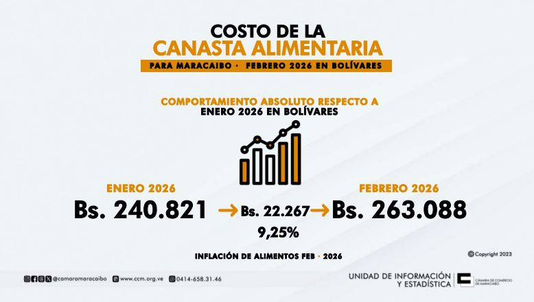 LEE TAMBIÉN: Canasta Alimentaria en Maracaibo aumentó 23,40 % en bolívares durante el transcurso de enero 2026