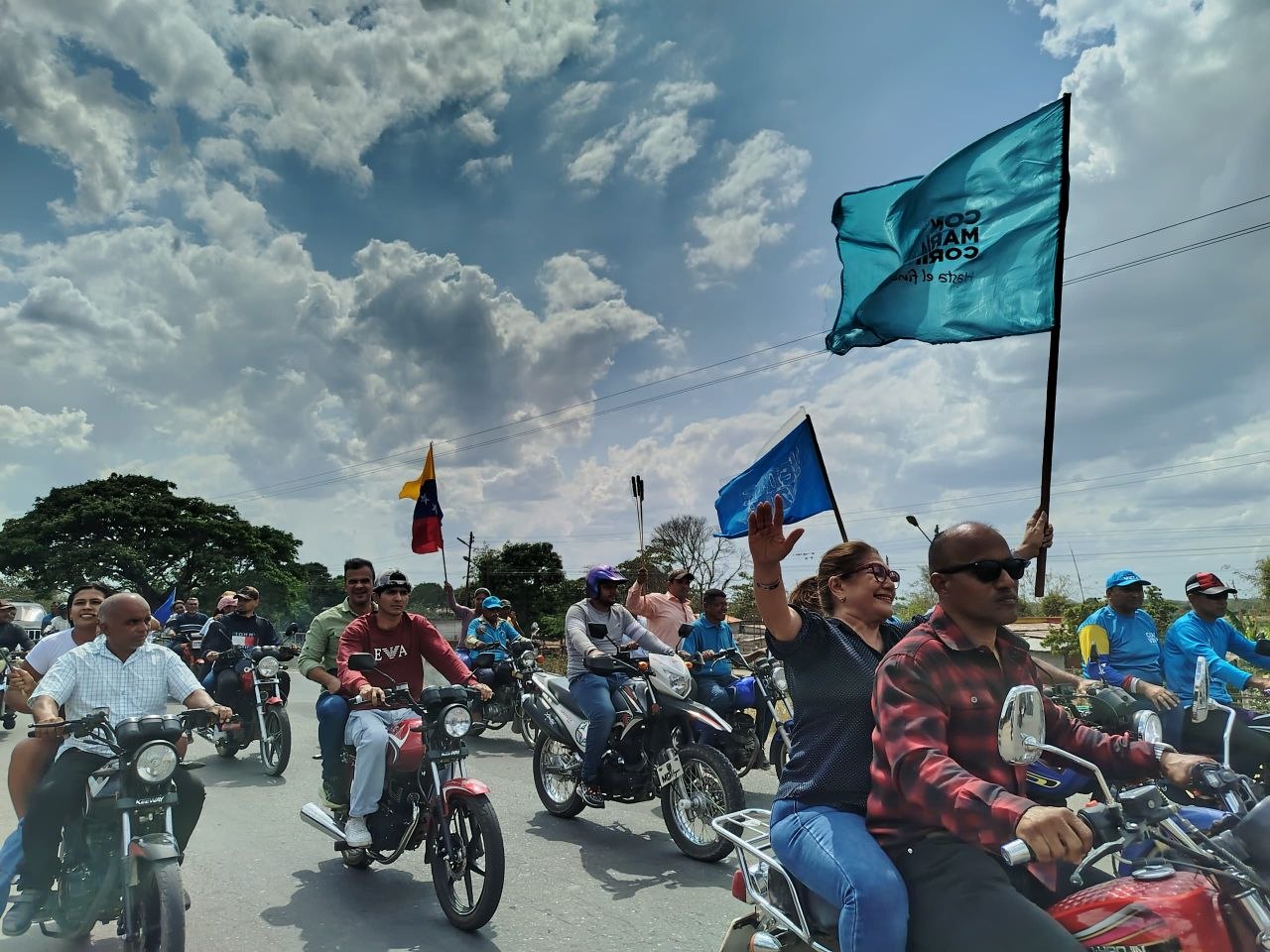 Acompañada por la directiva regional y los equipos municipales de la organización, Mota recorrió las principales calles de la capital del municipio hasta llegar al punto de concentración: el club El Boral, en la parroquia Bruzual.