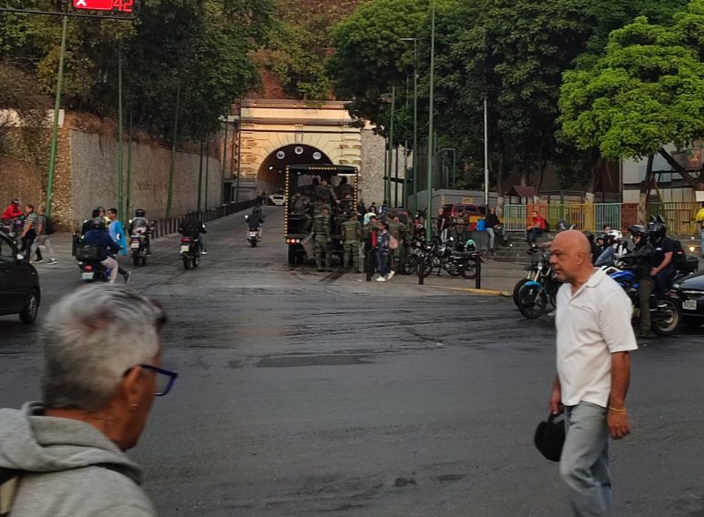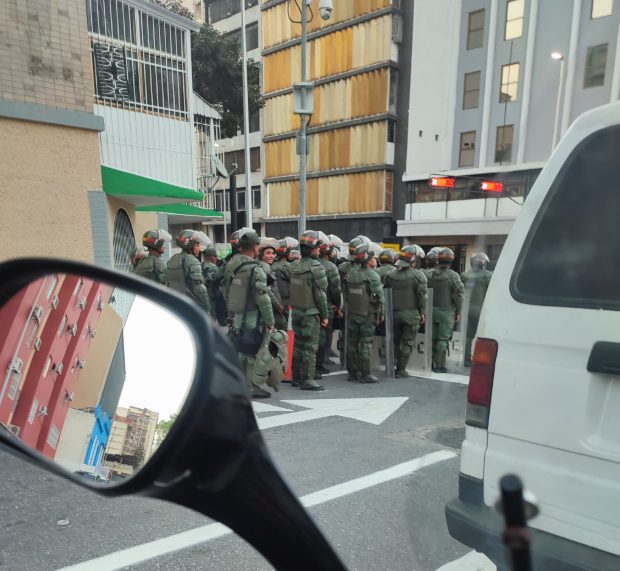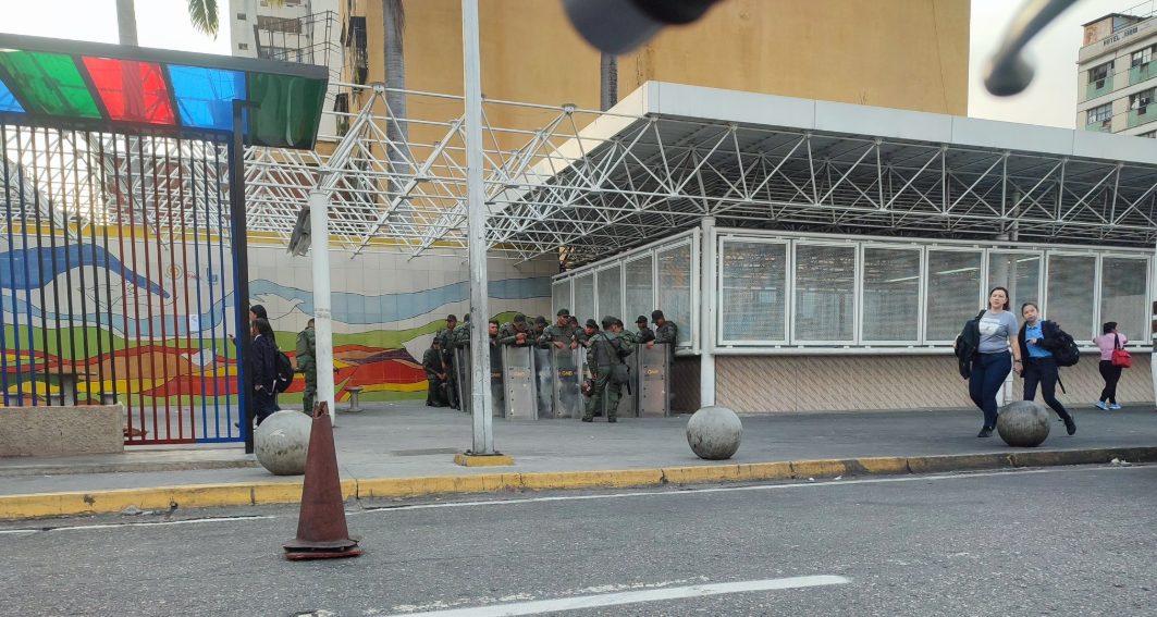Según informó el periodista Robert Lobo, contingentes de la Guardia Nacional Bolivariana (GNB) y de la Policía Nacional Bolivariana (PNB) tomaron los lugares equipados con equipos antimotines.