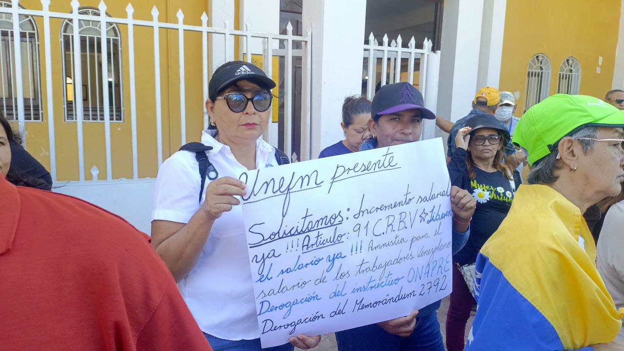 Por su parte, Carmen García, docente de Punto Fijo con 15 años de servicio, especialidad y maestría, denunció que su sueldo es de apenas 400 bolívares quincenales. «¿Qué hago yo con esa cifra? A eso se suma el abuso de los directivos y las exigencias del Ministerio de Educación. Vemos cómo los docentes están ahogados. Exigen y exigen, pero no dan nada. La infraestructura de los colegios es horrible y no tenemos insumos; aún así, piden sacar el trabajo como sea y en todo momento».