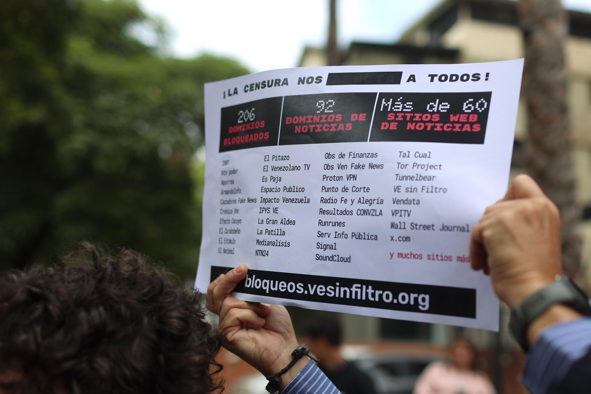 Más temprano, una veintena de activistas y periodistas exigieron a la Comisión Nacional de Telecomunicaciones (Conatel) de Venezuela que levante los bloqueos a sitios web y cese la «censura a Internet generalizada» en el país, donde denuncian hay más de 200 dominios bloqueados por las autoridades.