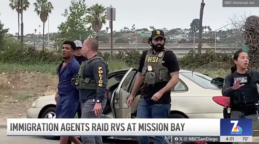 Según testigos que filmaron la redada, el ICE detuvo a Bastardo y a otros sospechosos en unas caravanas estacionadas en una zona costera.