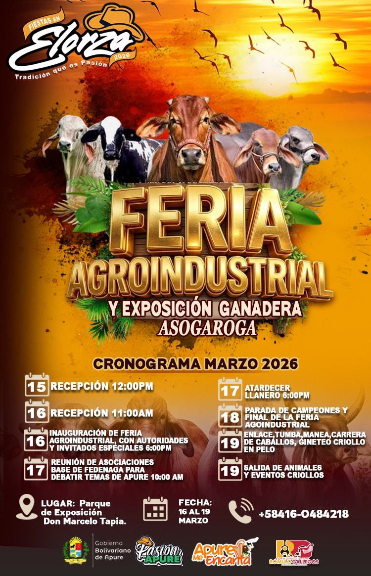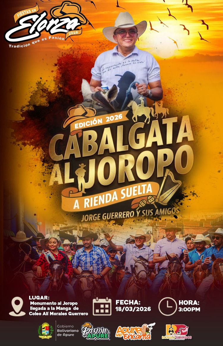 Este día cobrará especial relevancia histórica con la Sesión Solemne para la Declaratoria de Elorza como Capital Folclórica de Apure, cerrando la semana con un Atardecer Llanero que consolidará al pueblo de Elorza como el epicentro cultural de Venezuela.