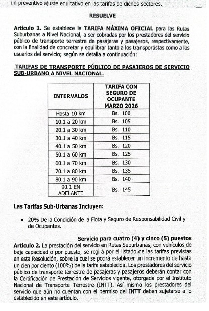 En el caso de las rutas suburbanas a nivel nacional, el ajuste quedó definido por tramos que van desde 100 bolívares hasta 145 bolívares, dependiendo de la distancia recorrida, según lo detallado en el documento oficial.