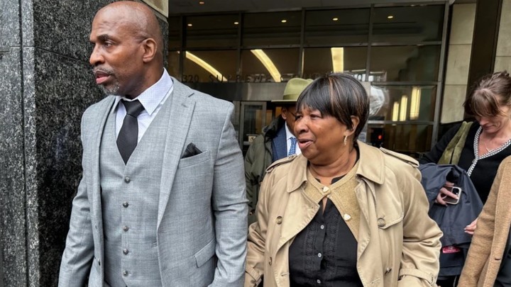 Kenneth Windley sale de un juzgado con su madre, Francina Windley Patterson, en Brooklyn, Nueva York, el lunes. Foto: AP