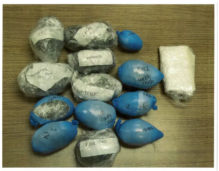 En el interior, los guardias encontraron dos cuchillos de doble filo de ocho pulgadas, 530 gramos de lo que parecía ser marihuana y cinco trozos de papel impregnados de sustancias químicas intoxicantes. También había un teléfono celular, una maquinilla de afeitar y cuatro pañuelos.
