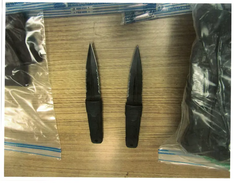 Los guardias encontraron dos cuchillos de doble filo de ocho pulgadas. Departamentos de Nueva York