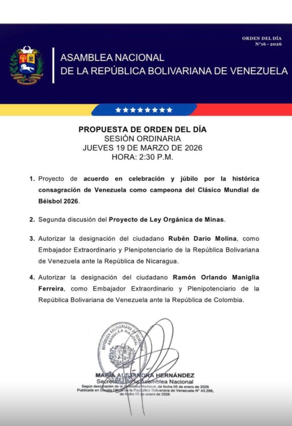 La Asamblea Nacional (AN, Parlamento) de Venezuela, dominada por el chavismo, convocó este jueves a la segunda discusión necesaria para la aprobación del proyecto de ley de minas, una reforma que podría abrir el sector a inversión privada y extranjera, ante el interés expreso de Estados Unidos en el oro venezolano.