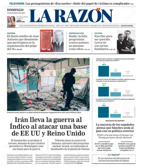 Portadas de la prensa internacional de este domingo 22 de marzo de 2026 Lapatilla marzo 21 2026, 7:30 pmPosteado en: PortadasCompártelo: Compartir en WhatsApp (Se abre en una ventana nueva) WhatsApp Compartir en Telegram (Se abre en una ventana nueva) Telegram Comparte en Facebook (Se abre en una ventana nueva) Facebook Compartir en X (Se abre en una ventana nueva) X Enviar un enlace a un amigo por correo electrónico (Se abre en una ventana nueva) Correo electrónico Compartir en LinkedIn (Se abre en una ventana nueva) LinkedIn ¡Únete al club ahora! Suscríbete al boletín más importante de Venezuela Compártelo: Compartir en WhatsApp (Se abre en una ventana nueva) WhatsApp Compartir en Telegram (Se abre en una ventana nueva) Telegram Comparte en Facebook (Se abre en una ventana nueva) Facebook Compartir en X (Se abre en una ventana nueva) X Enviar un enlace a un amigo por correo electrónico (Se abre en una ventana nueva) Correo electrónico Compartir en LinkedIn (Se abre en una ventana nueva) LinkedIn