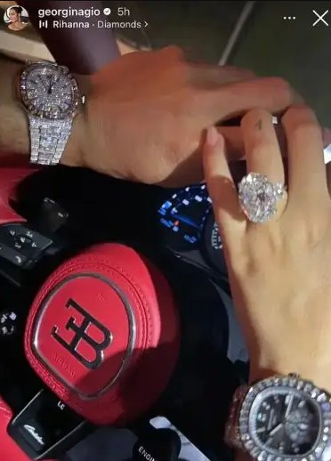 Georgina Rodríguez compartió, a través de una historia de Instagram, una imagen que pone de relieve la inmensa fortuna que posee junto al portugués, mostrando valiosas joyas y uno de los muchos coches de lujo de la colección de CR7. Una instantánea que no ha dejado indiferente a nadie.