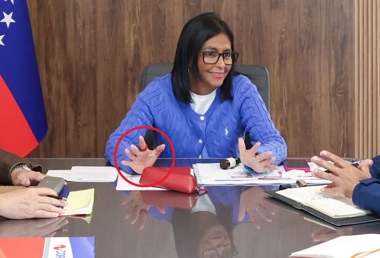 En las fotografías compartidas por el Palacio de Miraflores se observa a la sucesora de Nicolás Maduro mientras usa en el dedo índice de su mano derecha un Oura Ring, especializado en la medición del estrés y múltiples valores metabólicos, cuyo precio puede ascender a los 500 dólares.