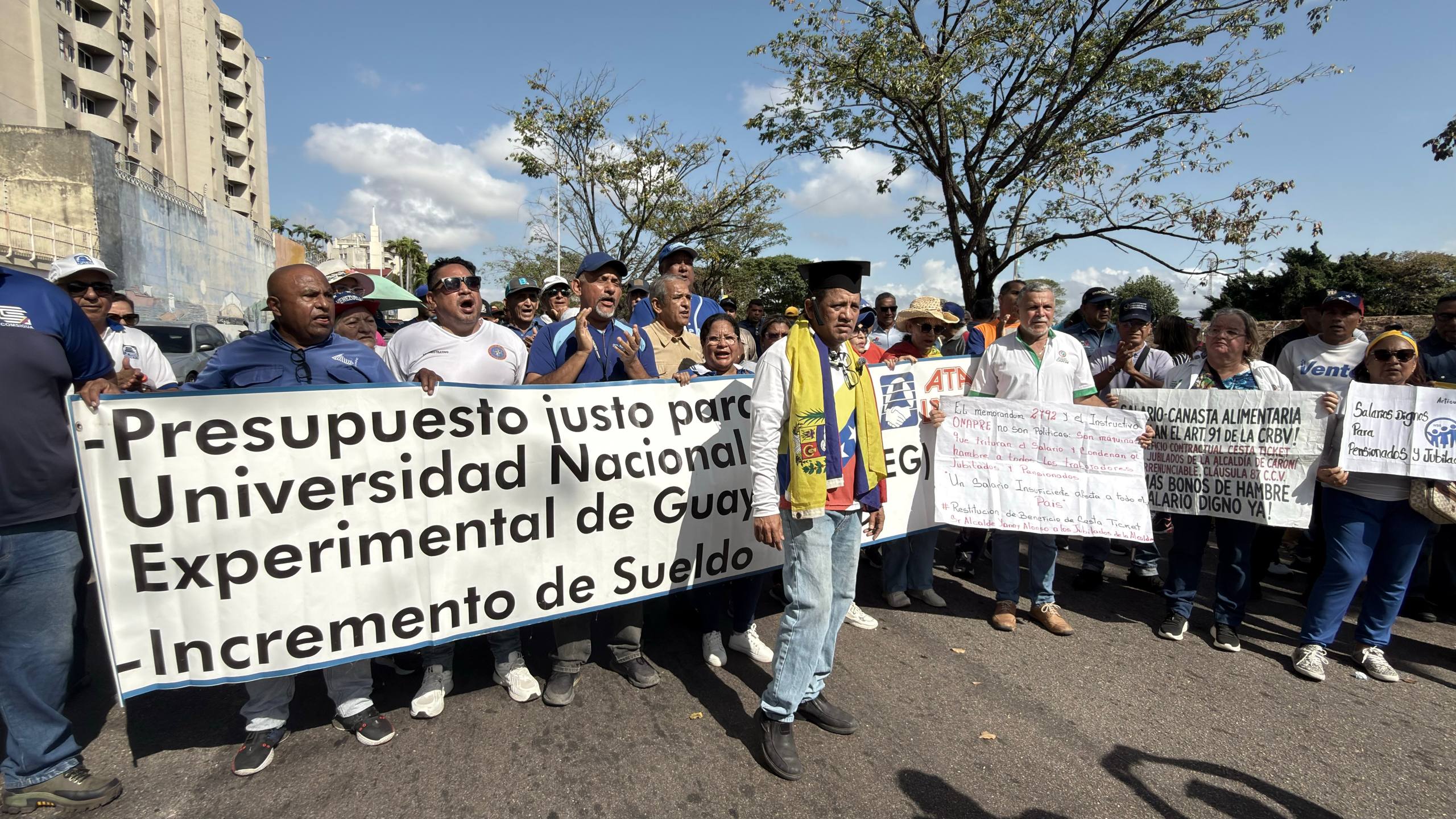 Durante su intervención, Brito fue enfático al enumerar las demandas que hoy mantienen al sector universitario en pie de lucha: Derogación del instructivo Onapre y del memorando 2792, salario digno y cese de la persecución contra líderes sindicales, pago de prestaciones sociales indexadas y del bono de alimentación, restitución de los recursos para las cajas de ahorro y atención a los jubilados de la alcaldía de Caroní.