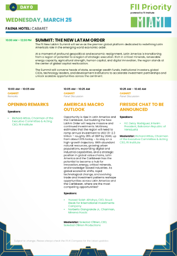 La agenda del encuentro internacional designó a Richard Attias, presidente del comité ejecutivo del Instituto FII, como el moderador de la entrevista con Rodríguez.