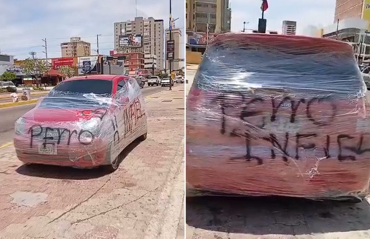 Un reciente video se viralizó rápidamente en redes sociales esta semana, cuando un automóvil amaneció envuelto en papel adherente en la avenida 5 de Julio de Maracaibo, estado Zulia.