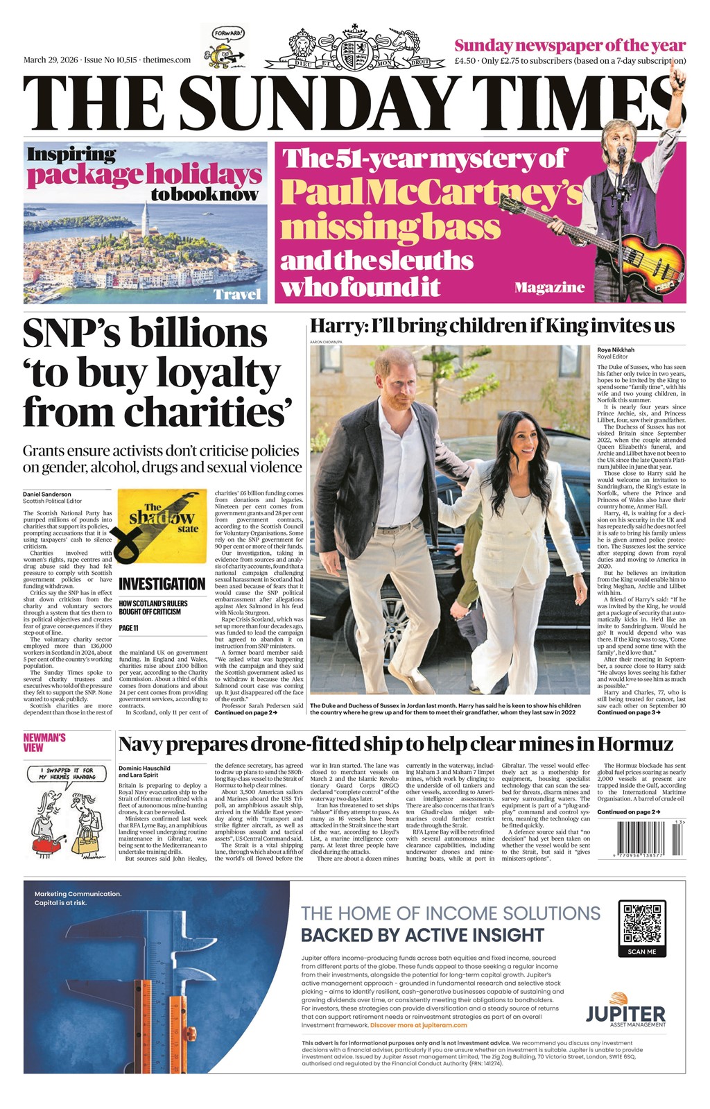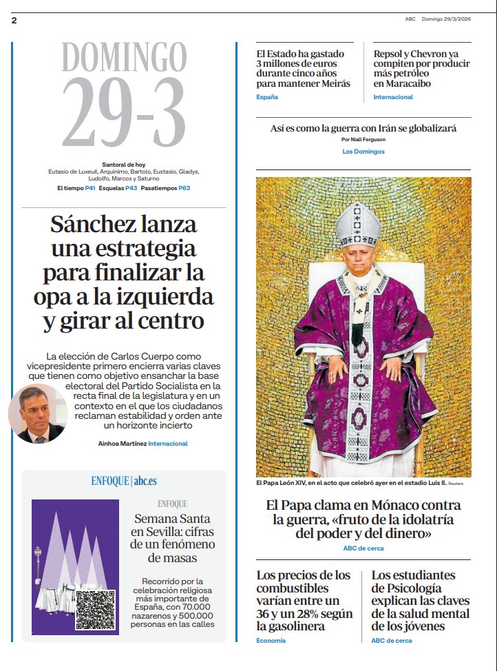 Portadas de la prensa internacional de este domingo 29 de marzo de 2026