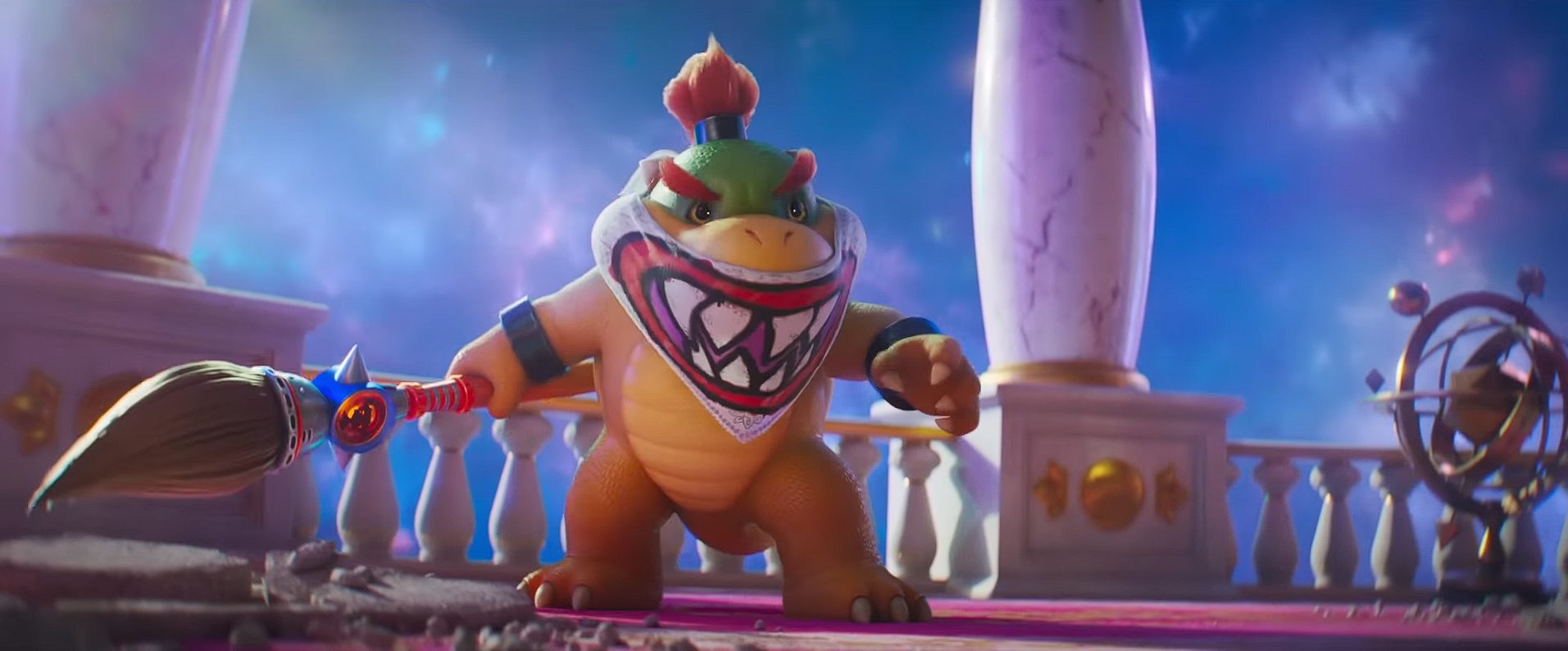 La gran novedad en esta entrega es la aparición del hijo del villano, Bowser Jr., con la voz de Benny Safdie, cuya relación con su padre se convierte en uno de los ejes del relato.