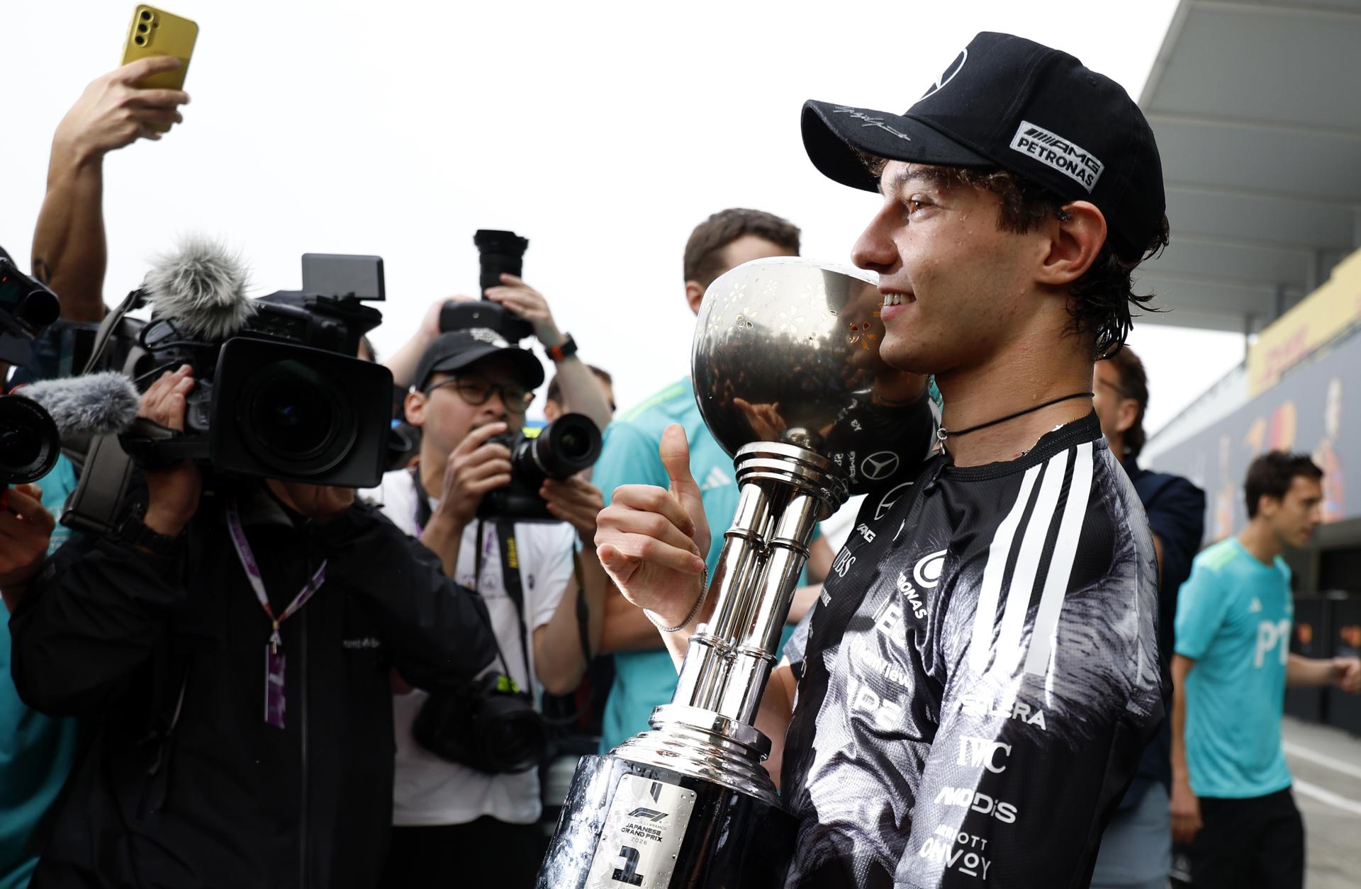 El italiano Andrea Kimi Antonelli (Mercedes) se convirtió en el líder más joven de toda la historia del Mundial de Fórmula Uno al ganar este domingo el Gran Premio de Japón, en Suzuka, donde se impuso por delante del australiano Oscar Piastri (McLaren) y del monegasco Charles Leclerc (Ferrari), segundo y tercero, respectivamente.