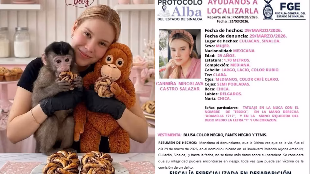 Autoridades mexicanas reportaron la desaparición en Sinaloa, noroeste del país, de la creadora de contenido Carmiña Castro, una joven de 29 años quien, de acuerdo con reportes locales, habría sido secuestrada por personas armadas.