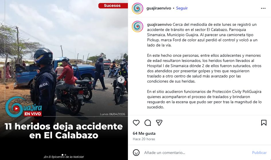 En el sitio acudieron funcionarios de Protección Civil y PoliGuajira quienes acompañaron el proceso de traslados y brindaron resguardo en la escena.