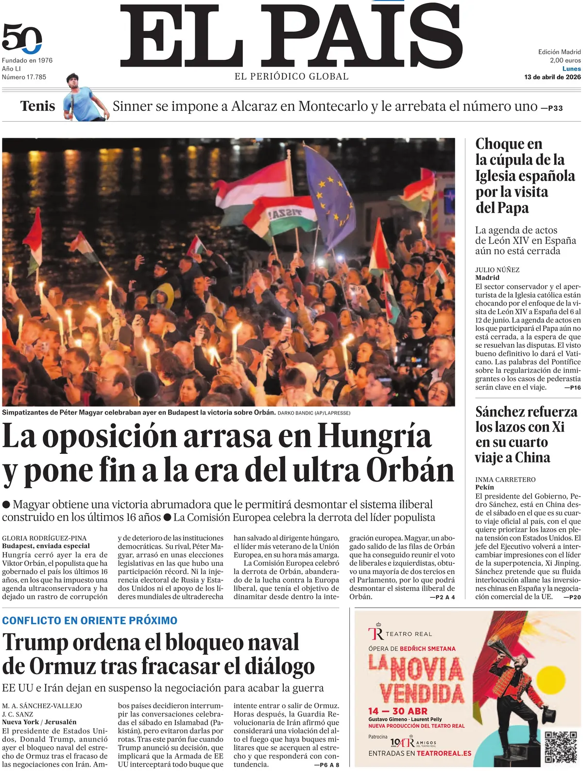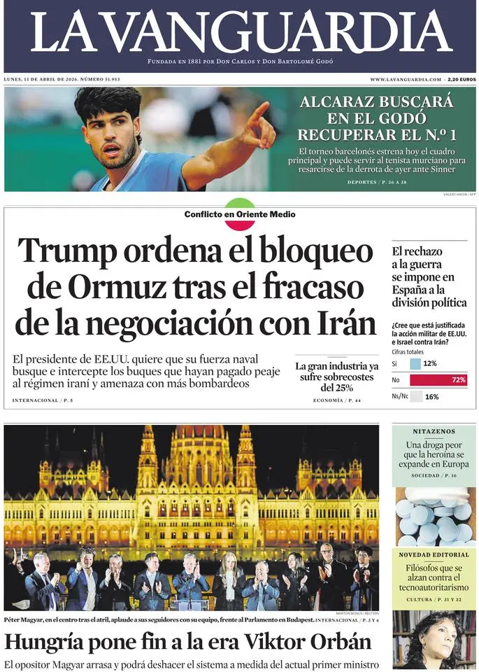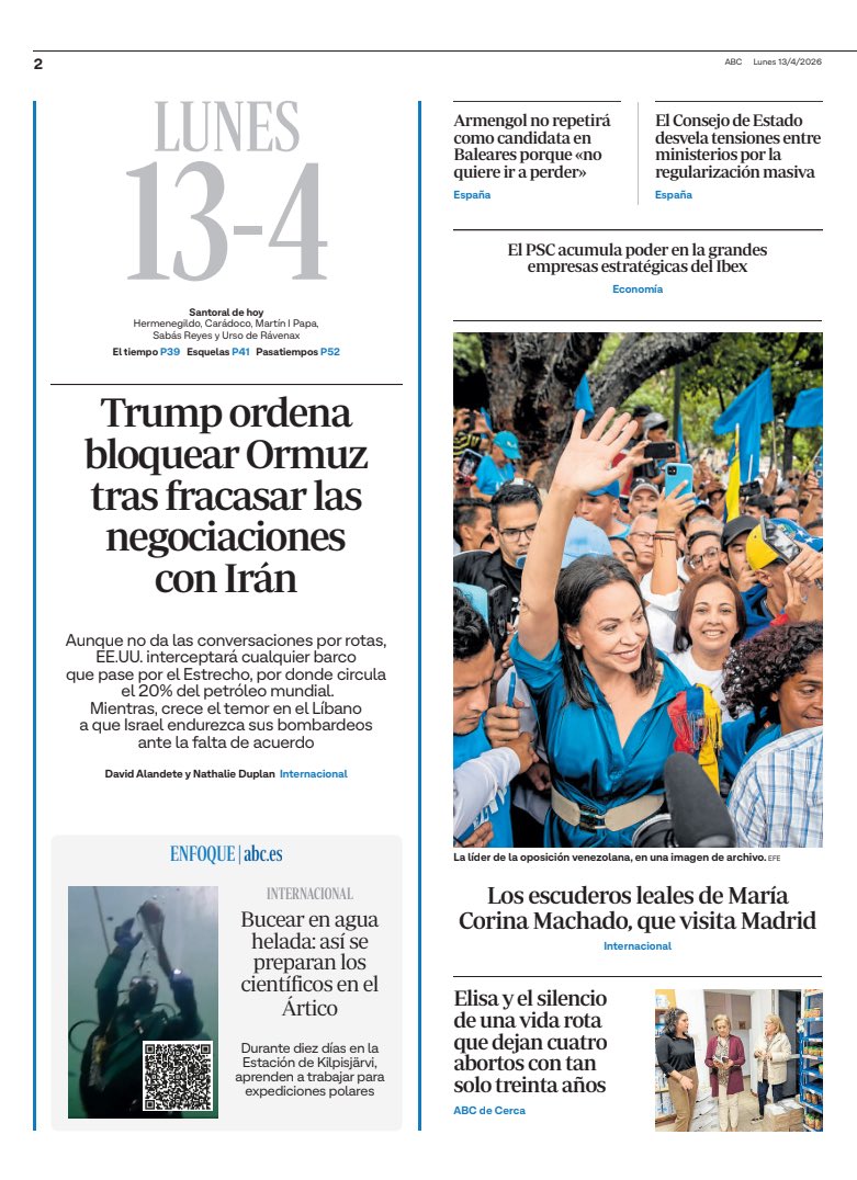 Portadas de la prensa internacional de este lunes 13 de abril de 2026