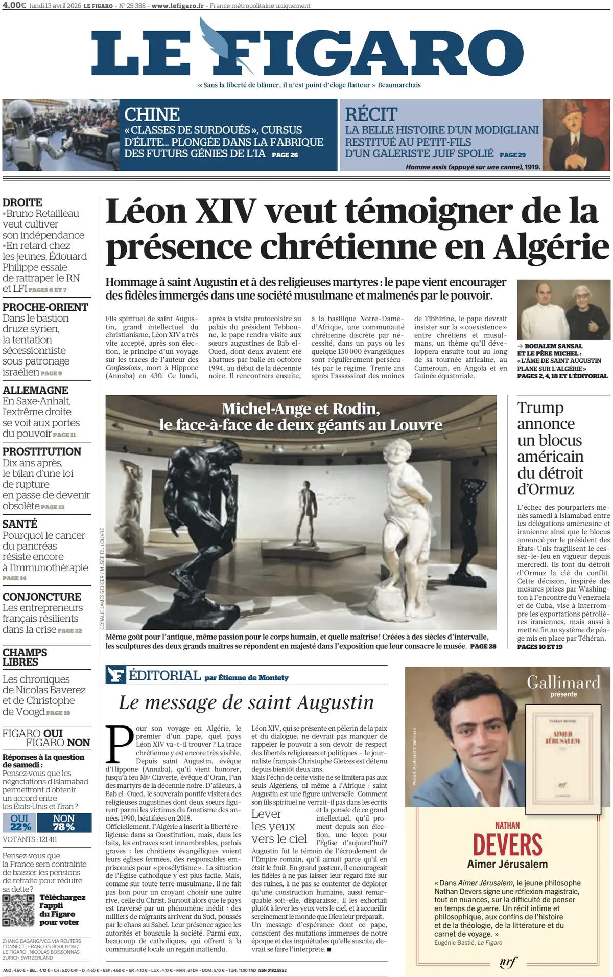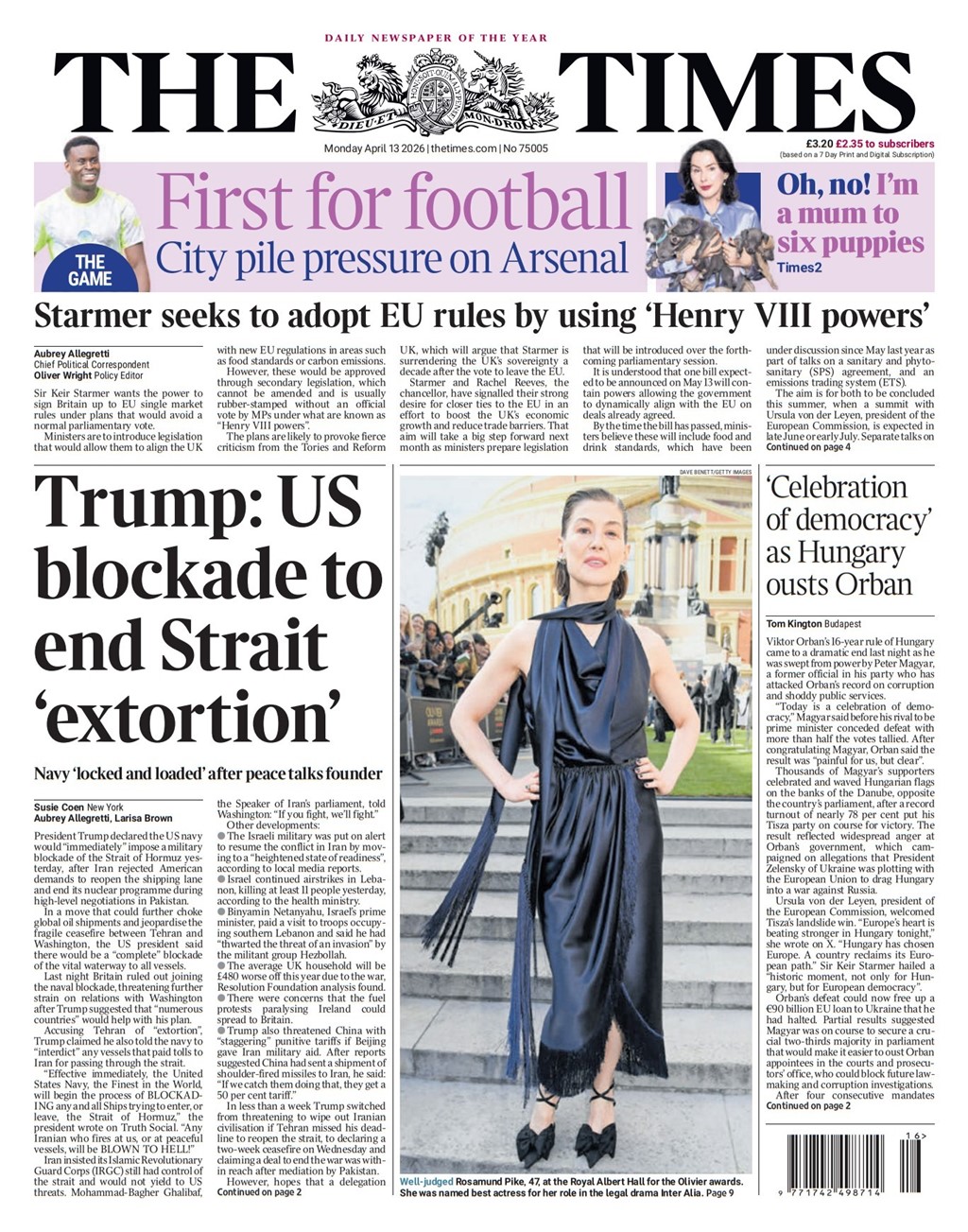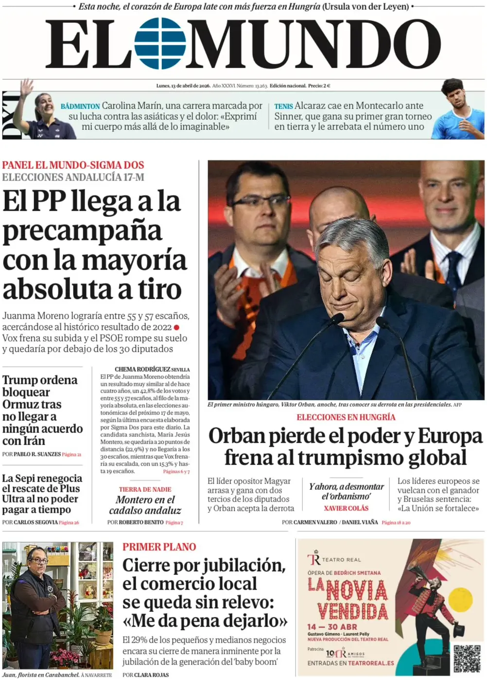 Portadas de la prensa internacional de este lunes 13 de abril de 2026